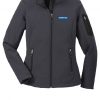 A rugged soft shell for hitting the trails or the town. A tough, textured ripstop shell and a warm plush sherpa fleece lining make this a versatile and technical jacket. Made with 3K/3K waterproof/breathable fabric. Reverse coil zippers, front zippered pockets, welded zippered pocket on left sleeve, open cuffs with woven contrast insets and an open hem with locking drawcords. Princess seams. Embroidery access pocket. Embroidered Eddie Bauer contrast logo on right hem. Made of a 100% polyester woven ripstop shell bonded to a water-resistant laminated film and a 100% polyester sherpa fleece lining.