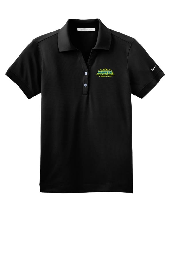 Nike is known for classic polos engineered to take comfort to the next level. The Dri-FIT fabric technology delivers superior moisture management, while the stitch-trimmed shoulder panels and gussets make a distinctive difference. Flat knit collar. Tailored for a feminine fit with a two-button Y-placket and flat knit cuffs. Pearlized buttons are selected to complement the shirt color. The contrast Swoosh design trademark is embroidered on the left sleeve. Made of 4.7-ounce, 100% polyester Dri-FIT fabric.