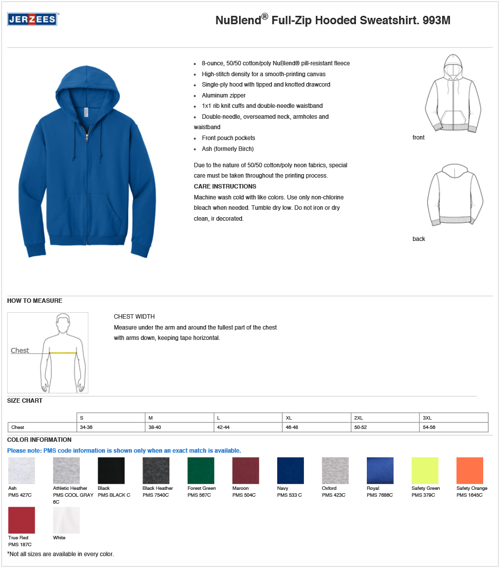 - 8-ounce, 50/50 cotton/poly NuBlend® pill-resistant fleece