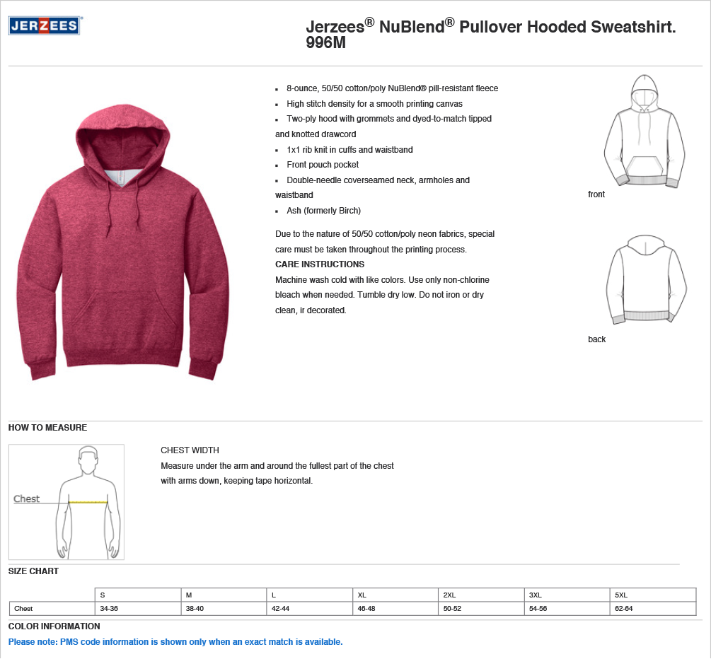 • 8-ounce, 50/50 cotton/poly NuBlend® pill-resistant fleece