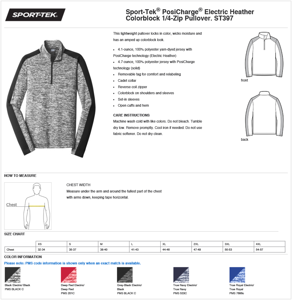 - 4.1-ounce, 100% polyester jersey with PosiCharge technology (Electric Heather)