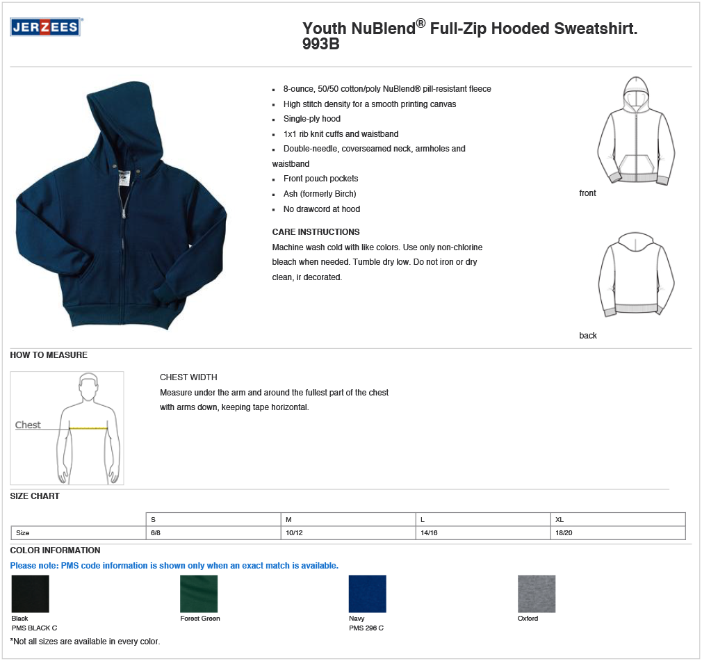 - 8-ounce, 50/50 cotton/poly NuBlend® pill-resistant fleece